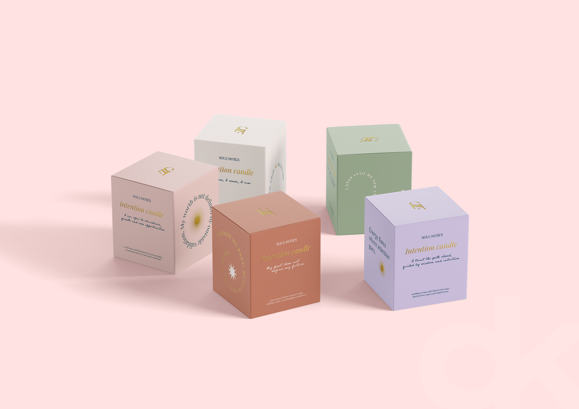 The process began with research into symbolism and rituals surrounding manifestation, self-reflection and self-acceptance. From this came a visual language that combines softness with structure: rounded shapes, subtle lines, and a palette that breathes serenity.